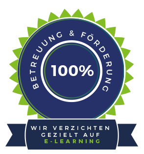 Uns ist Ihre Förderung und Weiterbildung wichtig, daher betreuen wir Sie persönlich. Unser Lernen ist unabhängig von digitalen Online-Plattformen und unsere Dozenten sind jederzeit für Sie ansprechbar und gehen auf Ihre persönlichen Anliegen ein.